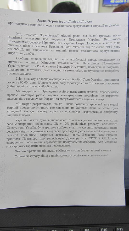 Чернігівські депутати підготували проект рішення щодо підтримки мирного плану Президента.