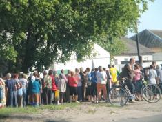 Перші рази Володимир Павлович стояв тільки 3 години і одержав зварену вермішель і дві маленькі котлетки поїсти і пакет з пляшкою олії, пачкою вермішелі та банкою консервів. Зараз бажаючих більше.