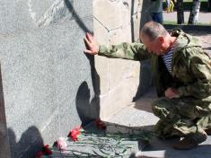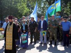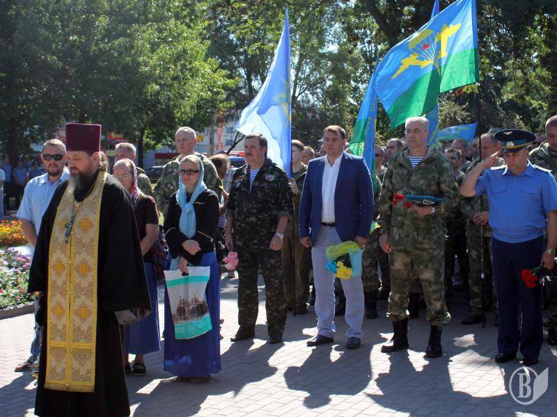 К памятнику погибшим воинам-афганцам пришли действующие и бывший воины-десантники и члены их семей, руководители области и города, чтобы поклониться подвигам воинов в Афганистане и во время проведения антитеррористической операции.