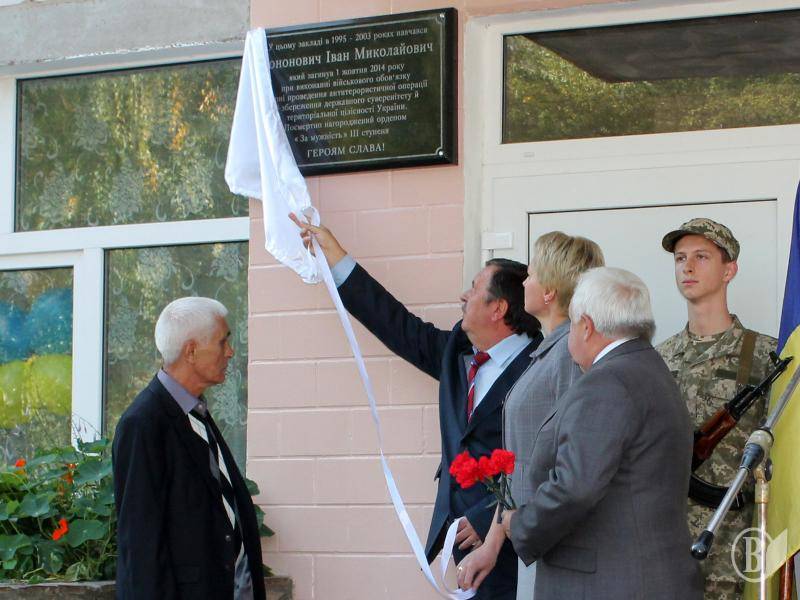 У Чернігові на будівлі школи–ліцею №22 урочисто відкрили меморіальну дошку загиблому воїну АТО Івану Кононовичу, випускнику цього закладу.