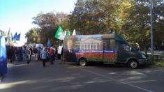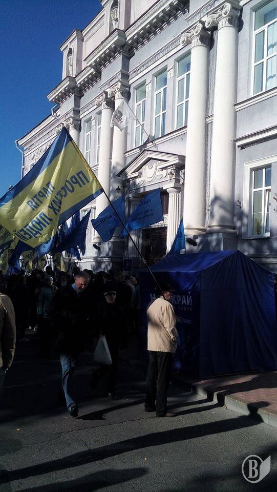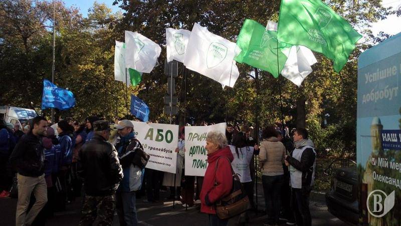 Вона проходить в оточенні кількох сотень мітингуючих – «охоронців» нині діючого мера і противників його перебування на посаді.