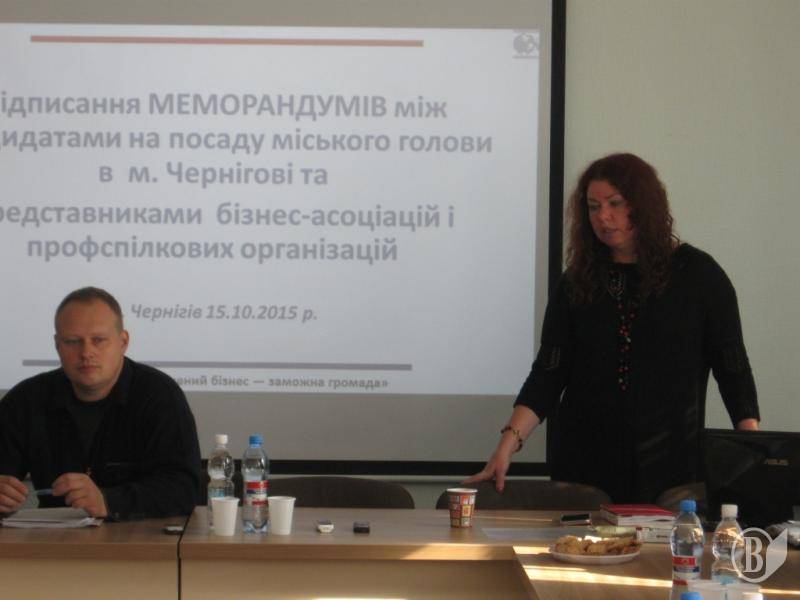 Як зазначила співкоординатор цього проекту, голова Центру підтримки малого та середнього бізнесу Ірина Березинець, пропозиції підприємців було надіслано на адреси всіх партій, які висувають своїх представників на посаду міського голови у Чернігові. "Ставлячи свій підпис, учасники круглого столу не тільки демонструють підтримку малого та середнього бізнесу, а й готовність реалізувати наші пропозиції щодо покращення бізнес-клімату в Чернігові", - підкреслила вона.