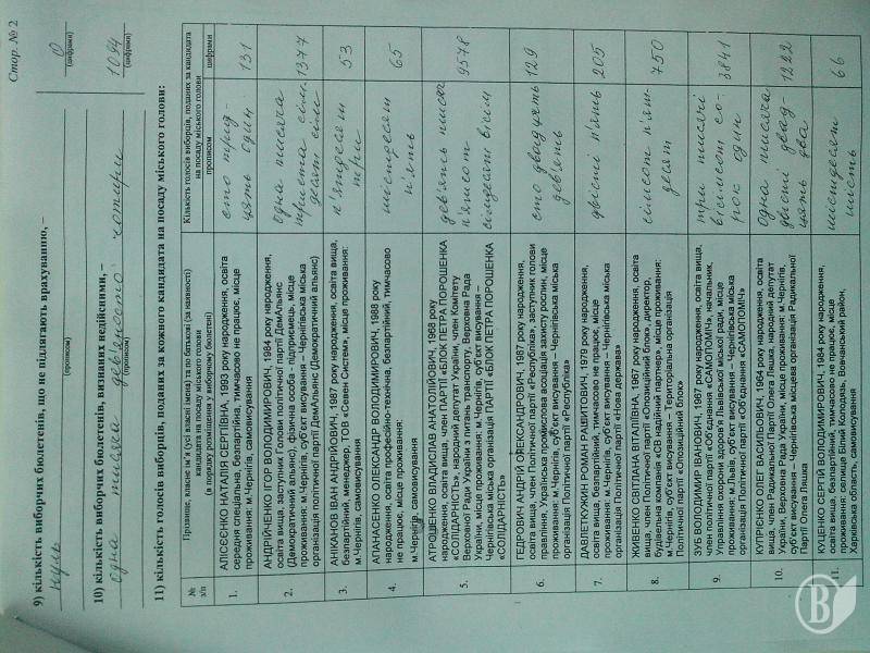 К сожалению, в итоговом протоколе нет данных о голосовании в процентах. Однако, для того, кто умеет считать, нетрудно заметить еще одну тенденцию – пропорции распределения доверия избирателей сохраняются, если сравнить Новозаводский с Деснянским районом. Разница у отдельных кандидатов составляет 1-4%. Например, у Александра Соколова несколько меньше поддержка избирателей-новозаводчан, а у Владислава Атрошенко несколько большая, но в тех же пределах.