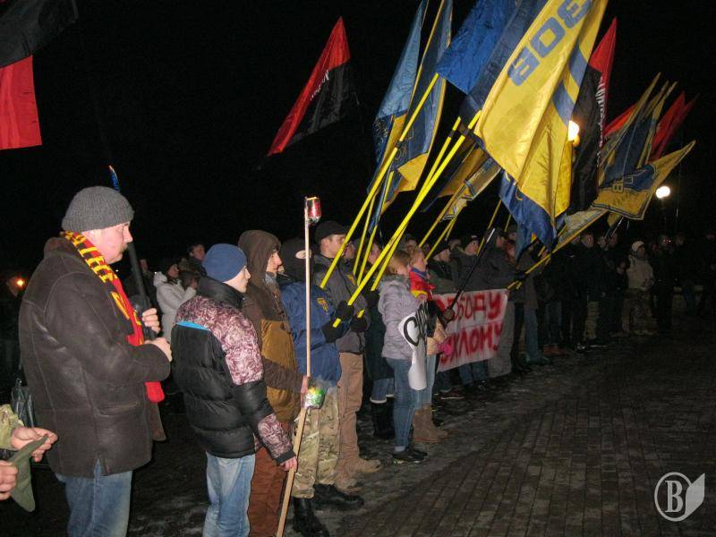 Марш на підтримку політв`язнів увечері 30 січня провели активісти Правого сектора, ВО «Тризуб» ім. С. Бандери, Національного Альянсу, Жіночої Січі, бійці добровольчих батальйонів та інші патріоти.