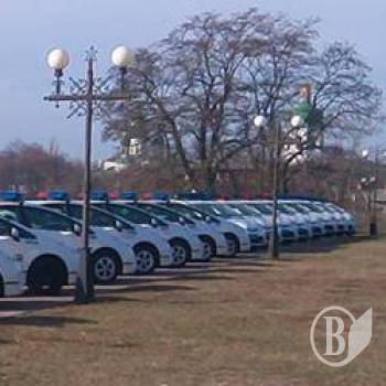 Автопарк полиции припарковали в парке