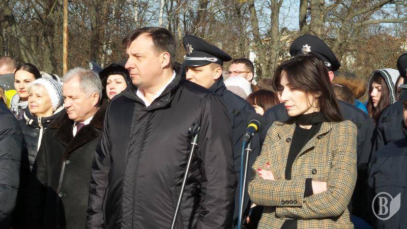 Присутні начальник Головного управління національної поліції в області Едуард Альохін, голова ОДА Валерій Куліч, міський голова Владислав Атрошенко та перший заступник міністра внутрішніх справ України Екатерина Згуладзе-Глуксманн.