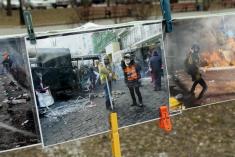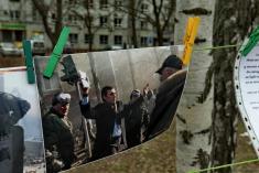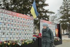 А неподалік у сквері активісти виставили експозицію світлин чернігівських фотокореспондентів, які відтворили у своїх роботах трагічні столичні події.