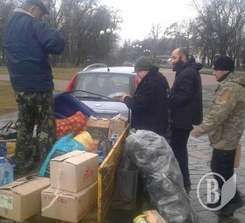 Капелан о. Євген Орда, водій Сергій Кропива та журналіст Віталій Назаренко повезли їжу і так потрібні нині дощовики та гумові чоботи.