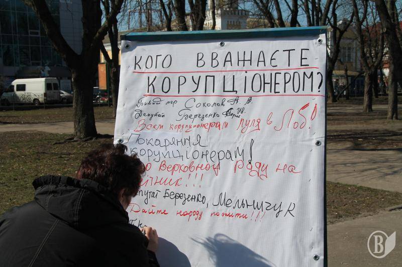 Відповідь на це запитання чернігівські журналісти можуть дізнатися після відкриття і підрахунку анкет. Їх заповнювали чернігівці 4 дні в сквері на проспекті Миру під час акції «Вимагаємо покарання», яку проводив «Антикорупційний рух» Валентина Наливайченка.