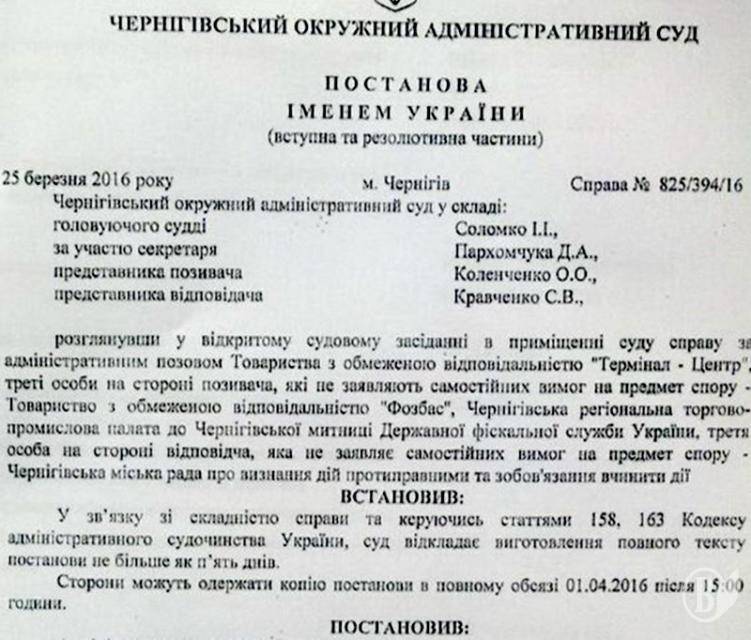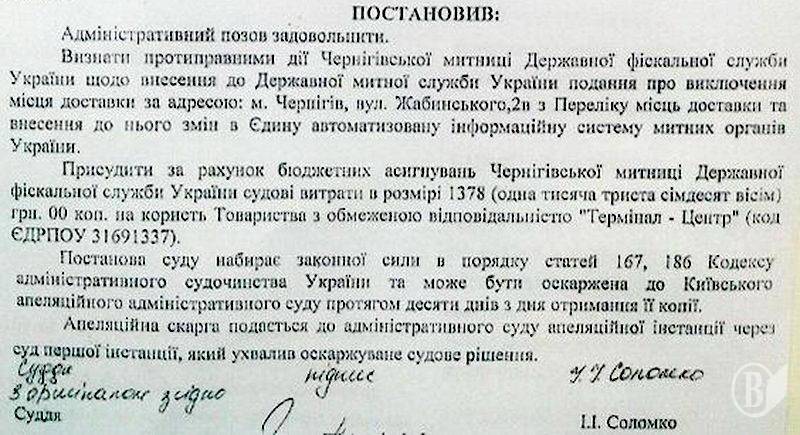 Закриття митного терміналу в Чернігові визнано протиправним.