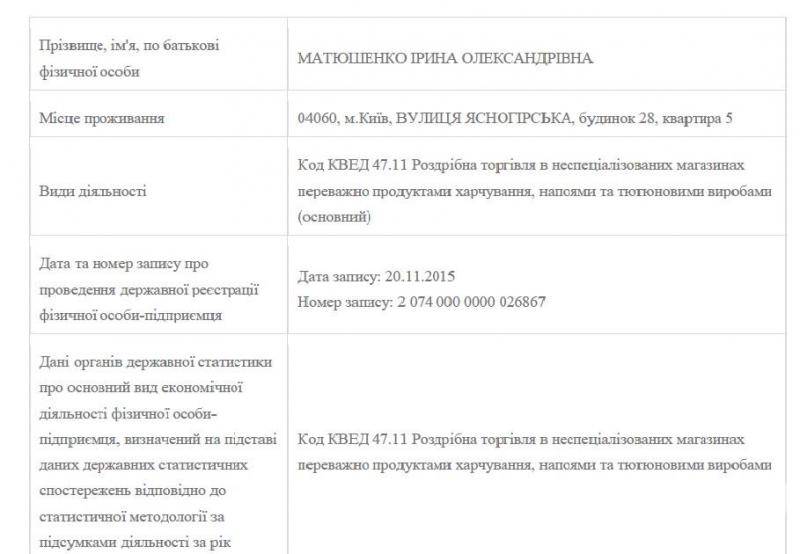 Власником МАФів, за словами Гашпара є ФОП Матюшенко І.О., який розпочав свою діяльність у листопаді 2015 року.