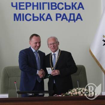 Міський голова Чернігова Владислав Атрошенко сьогодні, 22 травня, під час офіційної зустрічі із делегацією з міста-побратима Меммінгена, подарував обер-бургомістру Іво Хольцингеру давньоруську гривню.