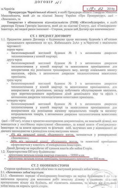 Після ряду звернень та запитів чернігівські активісти отримали договір замовлення між Чернігівською обласною прокуратурою в ТОВ «Житлобудсервіс», директорм якого є Григорій Пузан, щодо будівництва чотирьох черг будинків на вул. Жабинского, 2а.