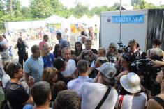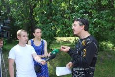 Атрошенко прийшов на відкриття атракціону Water Hill, як його обступили близько 15 протестувальників, які сьогодні вночі не дали комунальникам прибрати барельєфи.