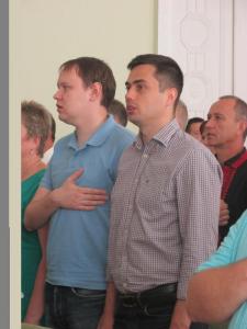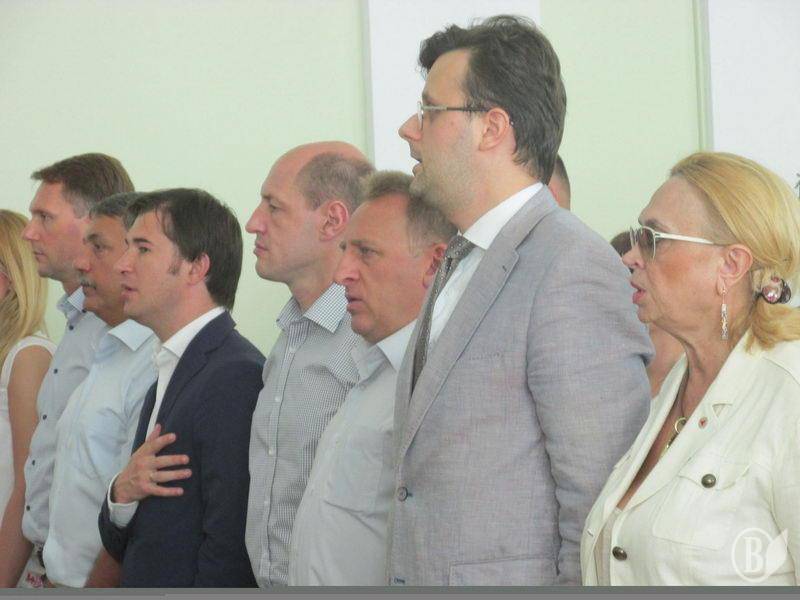 Першим ділом Атрошенко привітав квітами з днем народження свого попередника Олександра Соколова, що є нині депутатом ради. Також Атрошенко привітав з іменинами Регіну Гусак.
