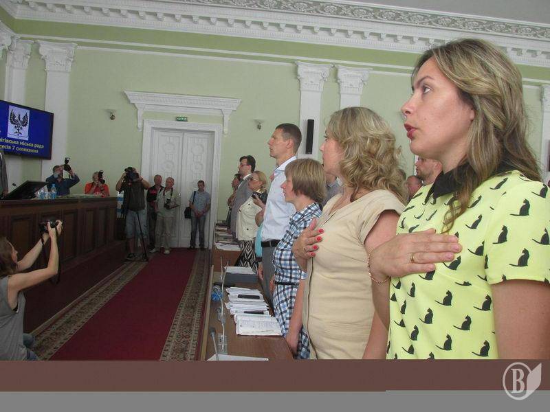 37 депутатів прибули й зареєструвалися на початку засідання 9 сесії Чернігівської міської ради VII скликання.