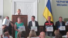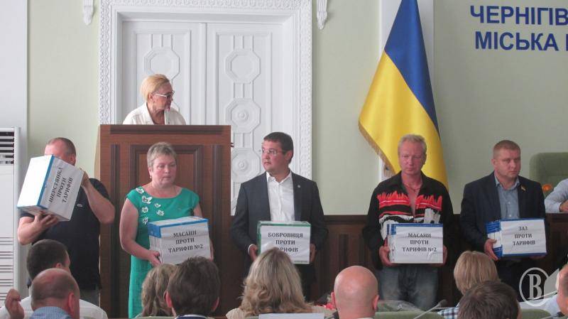 30.06.2016 Під стінами Чернігівської міськради представники "Батьківщини" агітують за Власенка і проти тарифів