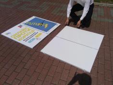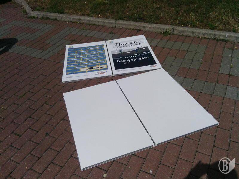 Через пориви вітру стенди з плакатами кілька разів падали додолу. Позираючи на це, перехожі стали жартувати, мовляв, як низько впав престиж боротьби з корупцією.
