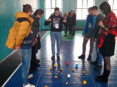 Власне перший день школи виявився дуже насиченим для команд з 10 міст України (в тому числі, з Чернігова та Ніжина). Вже перша частина, Team building, зламала всі стереотипи та уявлення про дебатерів, як зарозумілих інтелектуалів в окулярах та краватках. Молоді хлопці та дівчата у спортивній залі стрибали, кидали кульки, будували «Вавілонську вежу» з підносів та скляночок тощо. Мета – зблизитися, відчути одне одного, побудувати міцну команду.