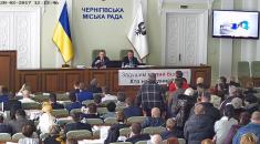 В залі міської ради Чернігова триває бурхливе обговорення теми зупиночних комплексів.
