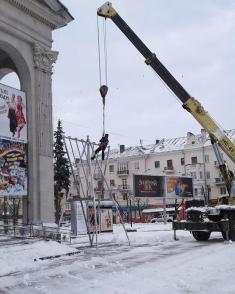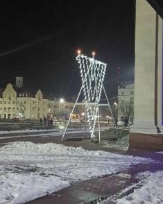 На центральній Красній площі Чернігова днями встановили (із загрозою для життя працівника) величезний символ «менора».