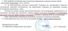 В свою чергу тендерний комітет знов відхиляє скаргу вже з новою причиною: «Учасник не виконав вимог Додатку №8 до документації, а саме: не надав у складі своєї пропозиції, оформлений належним чином, “Витяг зі статуту Учасника з положенням про особу, яка має право підпису договорів” у відповідності до вимог Наказу Мінюста України № 1000/5 від 18.06.2015 Мінюсту України» (протокольне рішення №328 від 12.11.2018 р.).