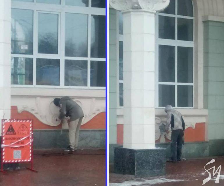 На зовнішніх стінах залізничного вокзалу в Чернігові демонтовані радянські п’ятиконечні зірки.