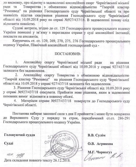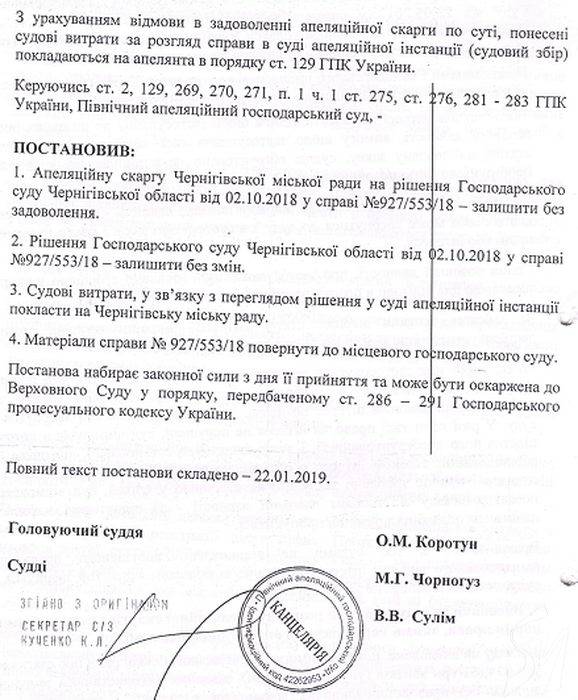 14.01.2019 р. Постанова Північного Апеляційного господарського суду: «Рішення суду першої інстанції – залишити без змін» (http://reyestr.court.gov.ua/Review/79337836).