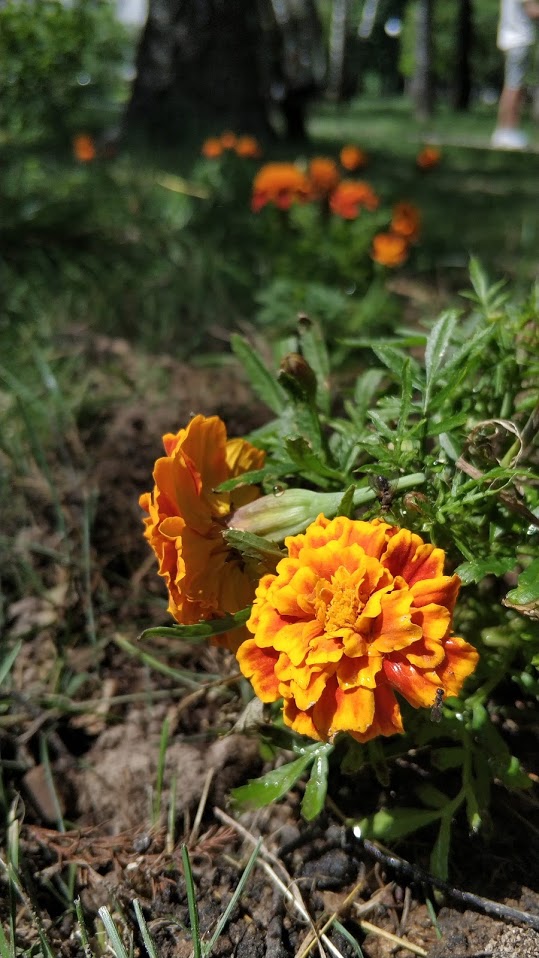 Сьогодні тут з’явилася молода клумба з чорнобривцями і молоденькі туї.