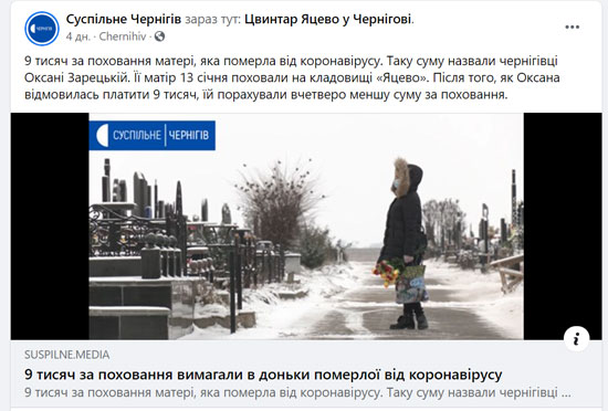 У Чернігові 236 померлих від COVID-19 поховали працівники комунального підприємства «Спецкомбінат побутовго обслуговування» з 1 червня 2020-го до 14 січня 2021 року на кладовищі в Яцевому.