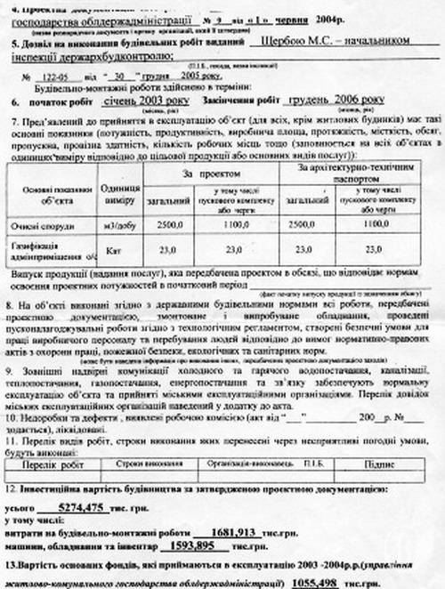 Пікантність цієї ситуації полягає в тому, що приймальна комісія, головою якої був і є Гайдай М.В., підписала акт про завершення будівництва.
