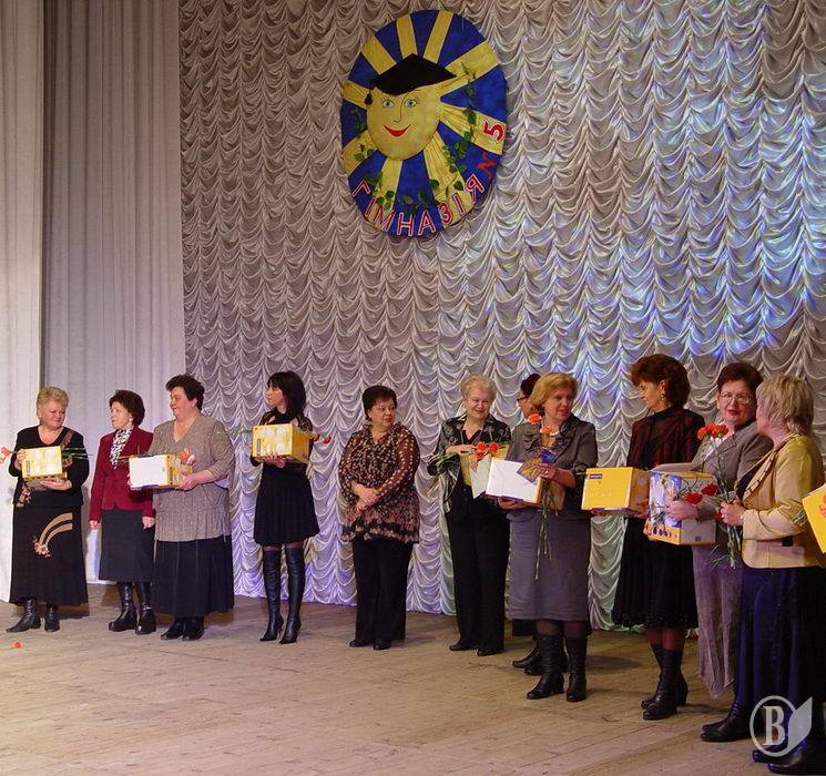 Після відвідин гімназії, урочистості продовжилися в Прилуцькому міському будинку культури. Тут усі вчителі та інші працівники гімназії №5 отримали індивідуальні подарунки від депутата Мирошниченка. Їх отримали також всі ветерани освіти, які нині перебувають на пенсії, але раніше працювали у цьому навчальному закладі. Ті з них, хто пропрацював більше 20 років (таких було 27 осіб) отримали ще й індивідуальні подарунки від депутата.
