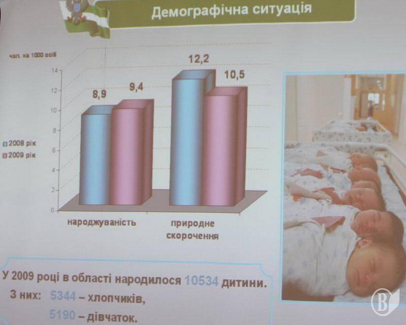 Об этом сообщила заместитель председателя облгосадминистрации Наталия Белоус во время расширенного заседания Коллегии облгосадминистрации, на которой подбиты итоги выполнения Программы социально-экономического развития и местных бюджетов области на 2009 год и определены основные задания на 2010 год.