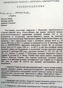 13 вересня 2007 року постановою Господарського суду Чернігівської області за позовом ТОВ «ТСЦ «Експо-Дніпро» до Чернігівської районної державної адміністрації визнано протиправною її бездіяльність та зобов’язано прийняти рішення щодо продажу товариству земельної ділянки несільськогосподарського призначення, яка орендується товариством.