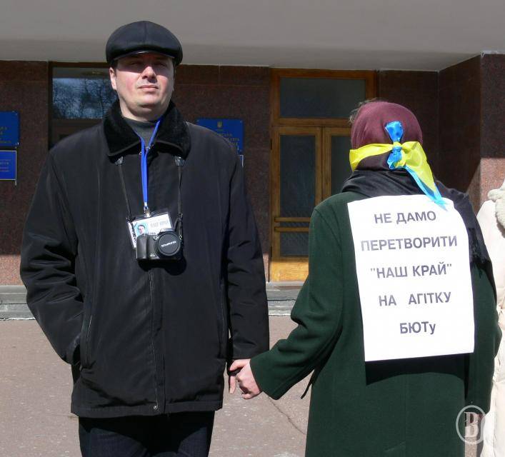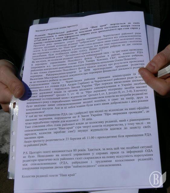 Сегодня в Чернигове в 11.00 около помещения Черниговской РГА начал акцию протеста коллектив районной газеты «Наш край».