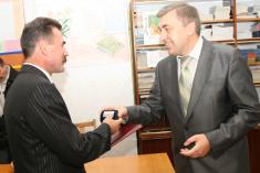 Напередодні свята Олег Обушний відвідав декілька чернігівських шкіл. Спілкувався з вчителями, привітав зі святом, вручав грамоти від обласної ради. Від себе особисто – торти для вчителів.