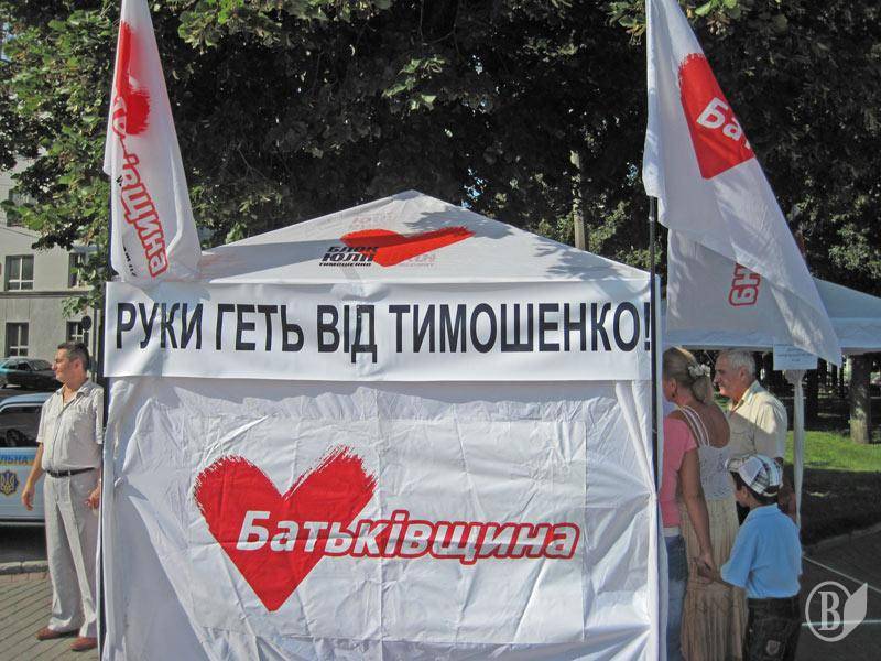 Чернігівська обласна організація партії "Всеукраїнське об'єднання "Батьківщина" установила16 серпня, вранці 3 агітаційні намети на центральної – Красній площі в знак протесту проти арешту колишнього прем'єр-міністра, лідера партії Юлії Тимошенко.
