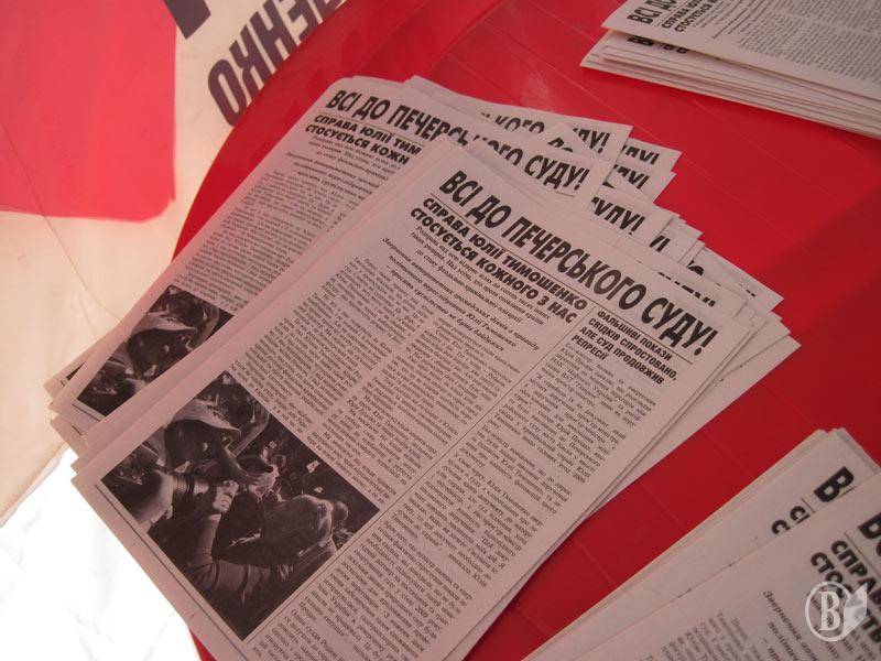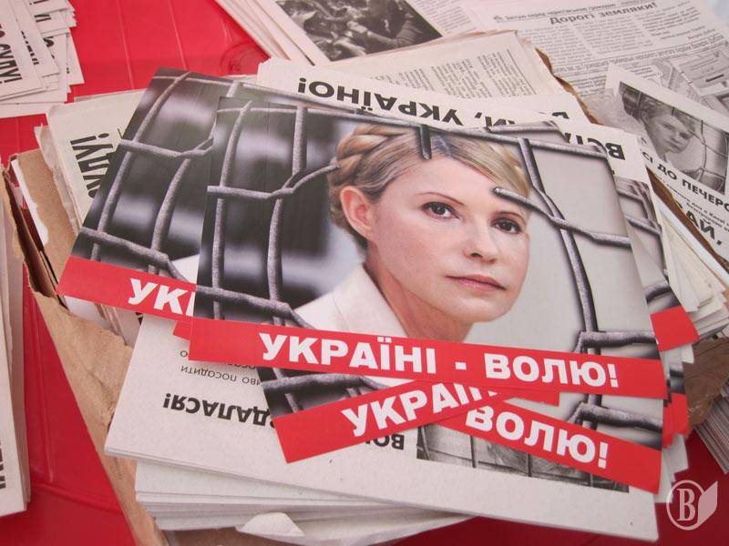 На наметах вивішені гасла "Геть руки від Тимошенко!", "Ні політичним репресіям!"