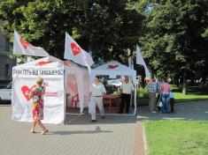 За словами голови чернігівської міської організації "Батьківщини" Олега Русіна, у наметах організовані виїзні приймальні депутатів у місцевих радах, які будуть працювати щодня з 9:00 до 18:00.