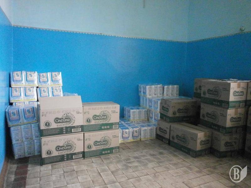У селі Дніпровському продукти отримали на свято Благовіщення. Ті, що не встигли поширити, зберігаються у приміщенні клубу.