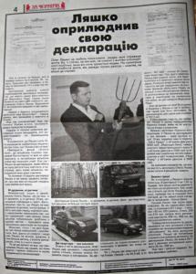 Агітатори посміли розповсюджувати газету – на фото нижче – де, крім свого кандидата, усіх кандидатів округу № 208 , була надрукована і декларація самого Олега Ляшка. – Це виявилося, був, за словами Олега Валерійовича, не голубий, а „чорний піар” проти нього.