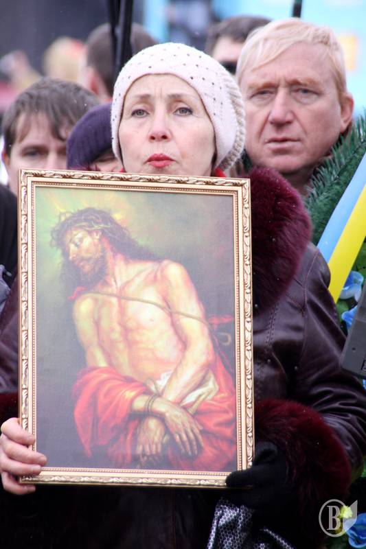 Бадьорі антипрезидентські і антикомуністичні гасла поступово стихли - естафету перехопили святі отці Української греко-католицької церкви, які відправили молебень і прочитали політичну проповідь.