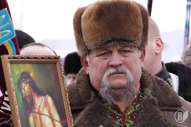Володимир Ступак на правах господаря надав почесне право виступити ветерану-"рухівцю", члену УНП Івану Зайцю. А от Тягнибок свою запальну промову починав вже другим: