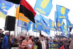 Одразу після завершення офіційного вшанування героїв Крут атмосферу однойменної залізничної станції біля меморіального комплексу пожвавила колона молодих людей на чолі з лідером ВО "Свобода" Олегом Тягнибоком.