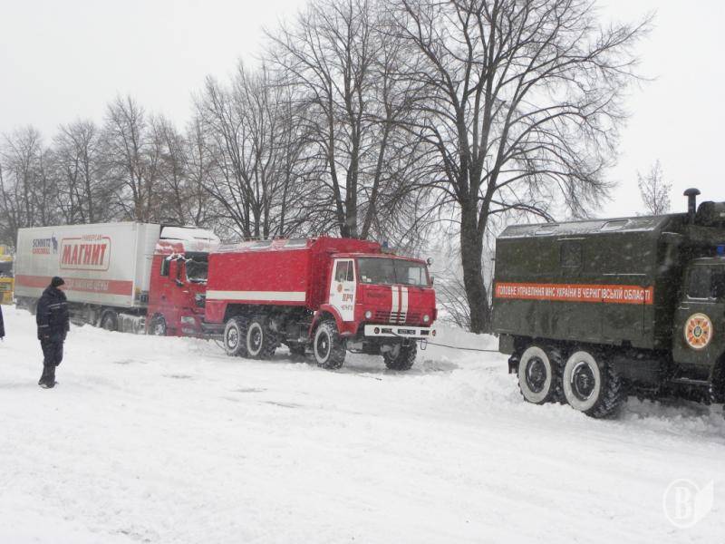 З 08:00 до 15:00 у Чернігівському, Козелецькому, Носівському, Ніжинському, Новгород-Сіверському, Срібнянському районах та містах Чернігів і Прилуки рятувальники витягли зі снігу 109 транспортних засобів (4 автобуси, 1 тролейбус, 26 легковиків та 82 вантажівки), в яких перебувало 159 людей.