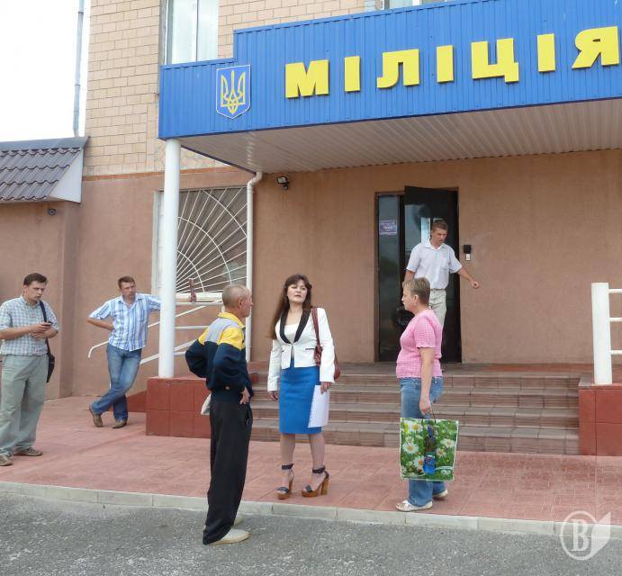 Так само без ентузіазму натовп журналістів, працівників міліції і СБУ (в т.ч. «з області») у супроводі зівак посунув «брати» райвідділок міліції. Перед райвідділком Ірму зустріли депутати міської ради, з якими пані Ірма трішки посперечалася. А за кілька хвилин покрокувала на ґанок райвідділу, зайшла всередину і стала вимагати господаря закладу пана Шепілова, аби поставити йому 2 основних питання. Перше – про кришування міліцією наркодилерів і про заволодіння квартирою ніжинської сім’ї з метою її перепродажу.