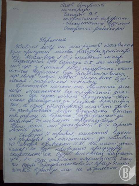 Депутати остерської міськради у своєму листі від 17-го липня просять обласне управління охорони здоров’я дати чіткі пояснення щодо долі лікарні і її фінансування на наступний 2014 рік (див. фото). Лист того ж змісту був спрямований головам Козелецької райради і Козелецької райдержадміністрації. Адже лише сесія райради може прийняти рішення про закриття медичного закладу.