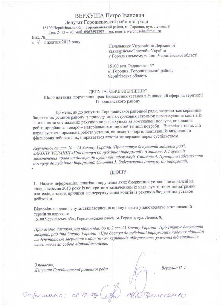 Председателю фракции ВО «Родина» в областном совете Александру Кодоле областное Госказначейство послало официальный ответ на его депутатское обращение.