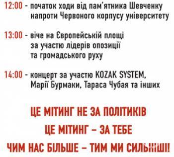 «Все, кому небезразлично собственно будущее, кто устал от беззакония и коррупции, кто хочет положить конец продажным судам, повседневным поборам и притеснениям, кто хочет европейского будущего - обязательно приходите 24 ноября на"Европлощадь", - говорится в обращении.