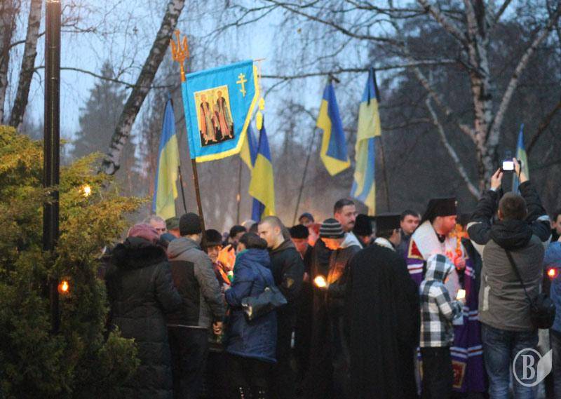 Чернігівці і гості міста зібралися в 15:30 біля П'ятницької церкви де почався молебень, який служили священики Української православної церкви Київського патріархату на чолі архиєпископом Чернігівським і Ніжинським Євстратієм (Зорею).
